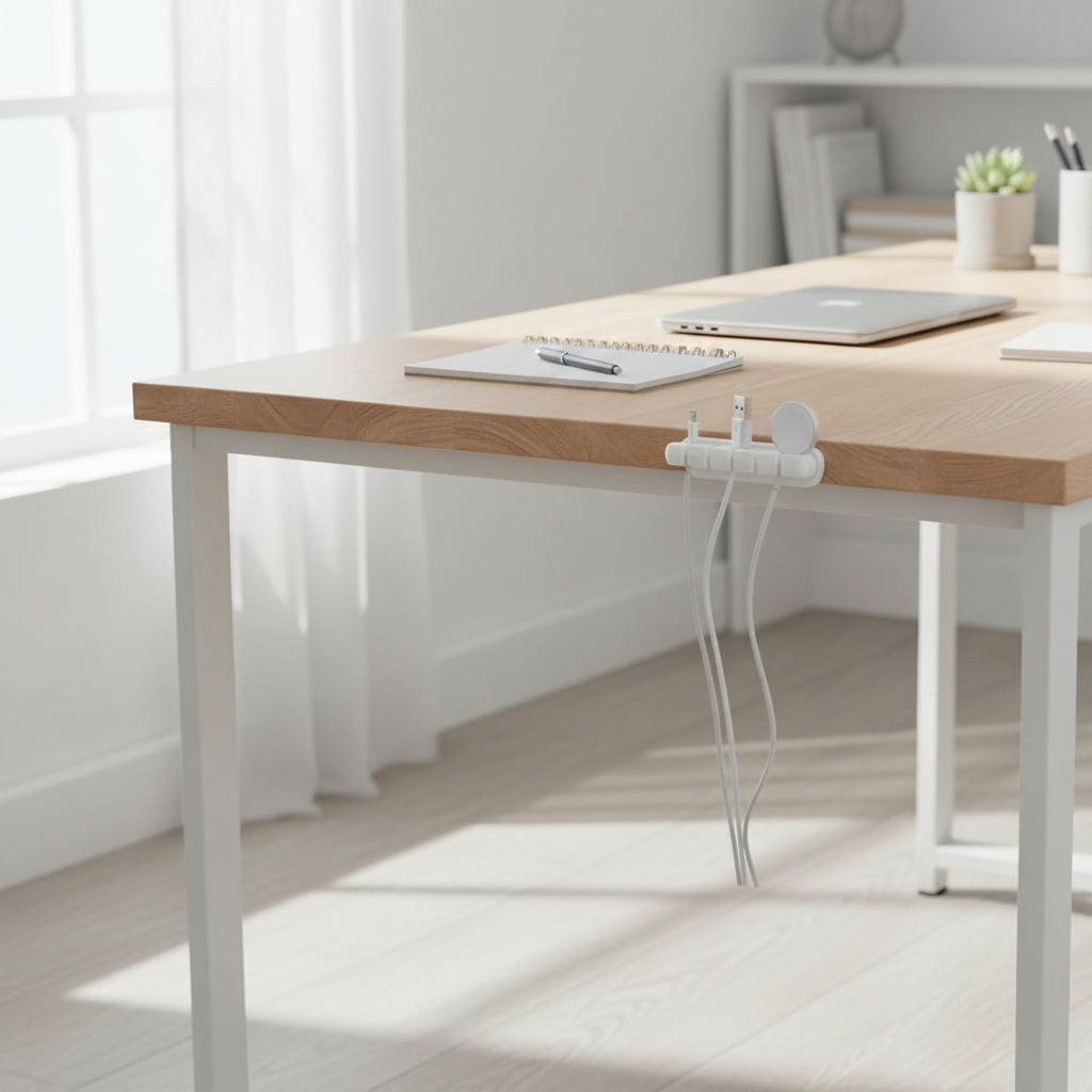 Lieferumfang: 1× Kabelorganisierer (5 Slots) 2× doppelseitige Klebe‑Stripes für den ersten Gebrauch (gratis)